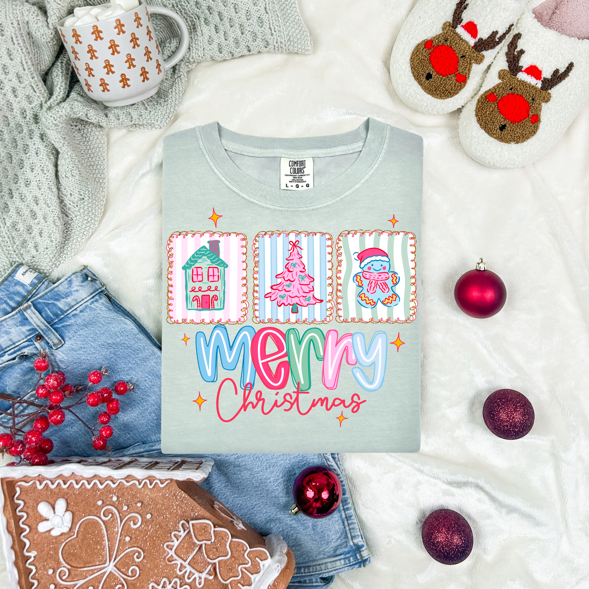 Merry Christmas with Tree and Gingerbread man Coquette DTF Transfer